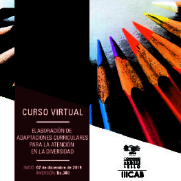 El costo único del Curso: “Adaptaciones curriculares para la atención en la diversidad” modalidad virtual es de 380 Bs. (Trescientos Ochenta bolivianos). Incluye el certificado correspondiente.